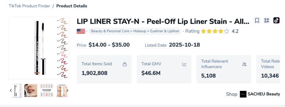 1. Lip Liner Stay‑N‑Peel — $46,618,796