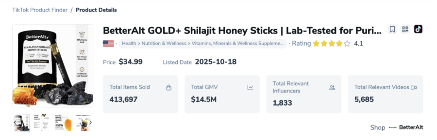 15. BetterAlt Gold+ Shilajit Honey Sticks — $14,475,258