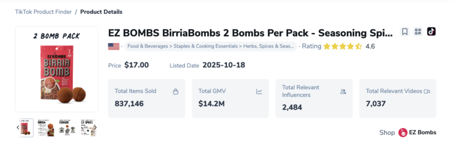 17. EZBombs Birria Bombs Seasoning — $14,231,482