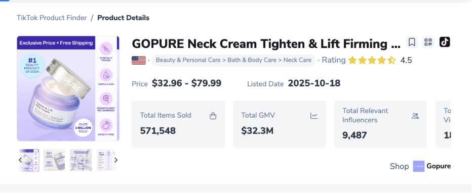 3. 定价与营销策略借鉴:通过观察爆款总销售额,卖家可以对市场容量、用户接受度有一个初步判断,同时参考其内容营销、TikTok 视频玩法和广告策略,但仍需根据自己产品进行测试优化。