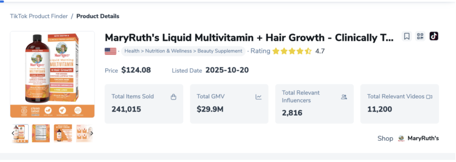 3. MaryRuth’s Liquid Multivitamin + Hair Growth — $29,905,141