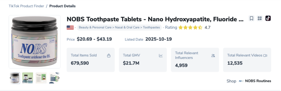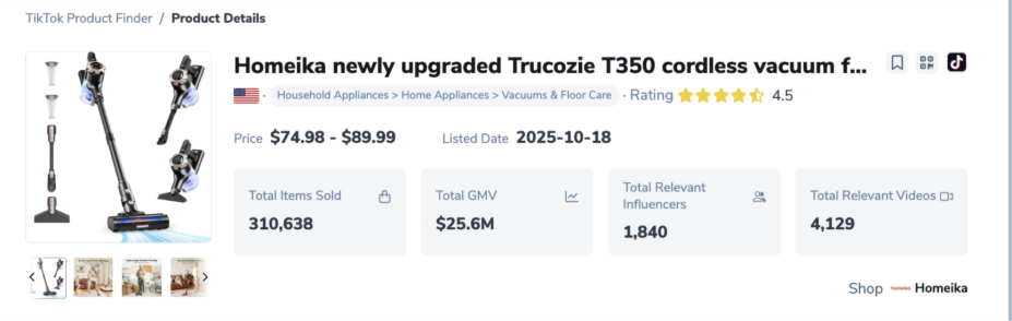 声明:本文数据来源于 Helium 10 的分析报告,文中所列的销量均为 总 GMV(Gross Merchandise Value),即累计销售额,而非某个特定周期的销量。跨境卖家在参考这些数据时,请注意:不能直接照抄上架就认为会卖得好,TikTok Shop 的趋势和目标市场偏好会随时间快速变化,直接复制爆款存在风险,更多应作为选品参考与运营策略参考。